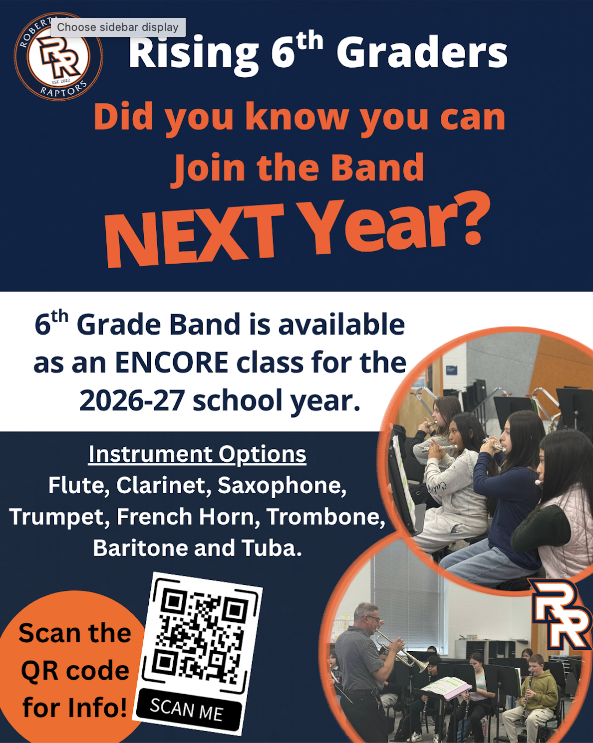 Attention Rising 6th Graders: Band is available as an Encore class for the 2026-27 school year!Instrument Options To Choose From - Flute, Clarinet, Saxophone, Trumpet, French Horn, Trombone, Barito...